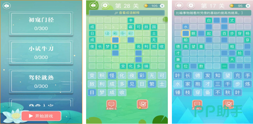 创新融合填字解谜与模拟经营双线玩法。玩家通过正确填写成语解锁种子、浇灌成长、收获装饰物,逐步扩建专属“成语花园”。关卡按主题分类——如节气、历史人物、自然现象等,每个主题下设多层难度,既考察词汇量,也强化文化联想能力。花园建设进度实时反馈学习成果,形成正向激励闭环,适合长期坚持的语言能力养成场景。