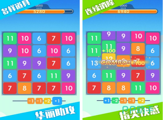 本作采用三消+数字合成双机制,玩家需在网格中滑动并连接三个或以上相同数字,触发合并升级。界面采用高对比度配色与动态粒子反馈,强化消除快感;每轮操作均可累积连击倍率,提升得分效率。核心策略在于预判数字生成位置与预留合成路径,兼顾短期清除与长期布局。