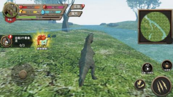 采用高精度物理模拟系统,构建出具备真实碰撞反馈与动态生态反应的史前世界。玩家可操控迅猛龙、霸王龙等数十种具差异化特性的史前生物,每一种均拥有专属成长曲线:体型增长、咬合力强化、冲刺耐力提升等均需通过持续吞噬小型目标实现。途中将遭遇突发威胁——如持械人类猎手或等级更高的掠食者,需即时切换走位与爆发加速策略。界面布局清晰,左下区域为方向控制区,右下集成攻击指令与瞬时加速功能。