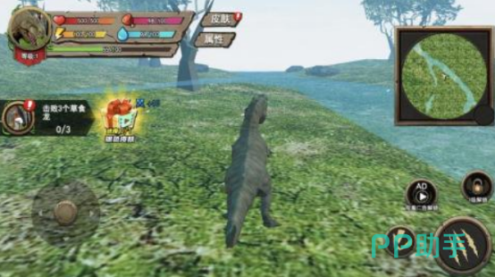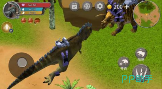 开放沙盒架构下的深度生存模拟作品。初始角色为幼年期基础种属恐龙,需在随机生成的多变环境中自主决策:暴雨引发洪水、暴雪降低体温、火山灰遮蔽视野……每一项自然变量均影响行动效率与资源获取。玩家可通过采集化石残片解锁图鉴、建造巢穴抵御天敌、驯化小型爬行类协助侦查,并按关卡目标执行精准狩猎——例如限时击杀三只三角龙或腕龙等指定草食目标,推动种群基因库升级路径。