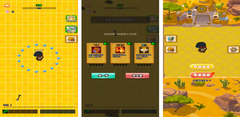 以塔防思维重构割草玩法的策略动作新品,《割草围城大挑战》要求玩家坚守固定据点,利用地形优势部署多类割草载具与自动炮台。主角为黄色小人形象,具备短时无敌、位移突进等战术技能。场景包含昼夜循环、天气变化与敌人属性克制关系,需动态调整布防方案。全武器库含12种以上可升级主武器,配合30+种被动增益模块,支持上百种组合配置。任务系统覆盖生存时长、击杀总数、连击纪录等多元目标。