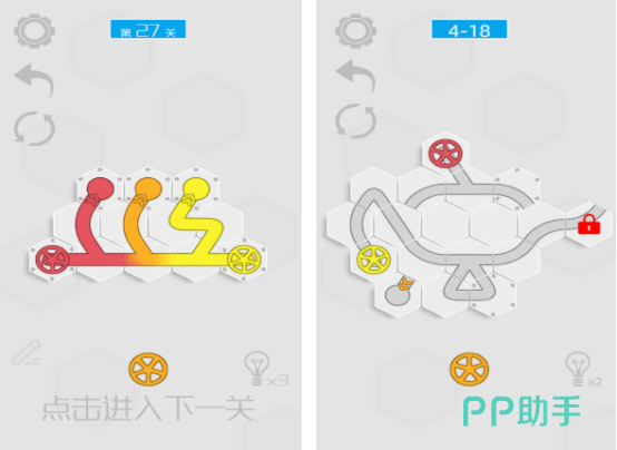 创新采用六边形网格布局,突破传统方格限制,大幅提升路径规划维度。玩家需综合运用旋转、交换与定向引导等方式,使多股不同颜色的水流各自抵达指定出口。每个关卡均设定明确目标条件,例如“全部水流无泄漏”“单次操作完成连通”等,考验空间想象力与多线程处理能力。