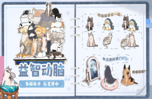 以动物形象为载体的记忆训练游戏:将橘猫、英短、柯基、拉布拉多等真实品种拆解为若干拼图块,随机打乱后要求玩家在限定时间内还原完整图像。每关布局唯一,支持缩放拖拽操作。内置拟真猫叫、犬吠音频,强化情感联结与正向反馈。关卡总量超三百,随进度开放更高阶的九宫格、十六宫格等复杂结构,系统性锻炼短期记忆容量与视觉空间重构能力。