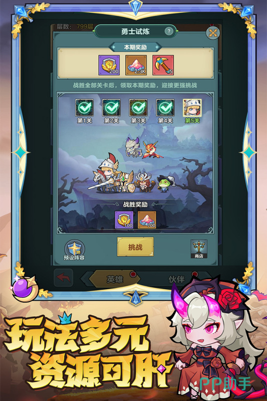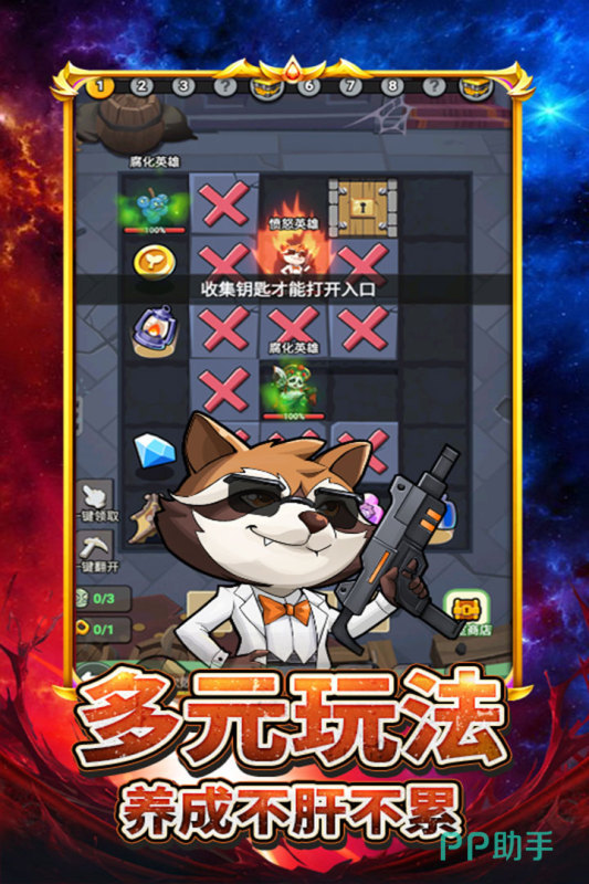 以清新Q版美术风格构建末日生存世界观,自动战斗配合多档倍速调节,兼顾休闲与效率。养成维度丰富,涵盖角色等级、技能树、装备强化及套装搭配等多重成长路径,纵向发展逻辑清晰,资源获取节奏合理,长期游玩不依赖付费加速。