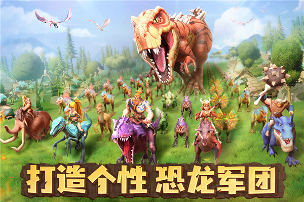 本作构建了一个生态层次丰富、地理特征鲜明的侏罗纪开放世界。地图覆盖火山地貌、原始沼泽、密林峡谷等多种环境,恐龙种类达数十种,涵盖食肉龙、植食龙及飞行爬行类等不同生态位。玩家以远古部落首领身份开局,需采集资源、升级设施、招募族人,并通过捕捉、驯养与基因配对机制,组建专属恐龙作战单位。战斗系统强调策略协同,不同恐龙具备独特技能与属性克制关系。