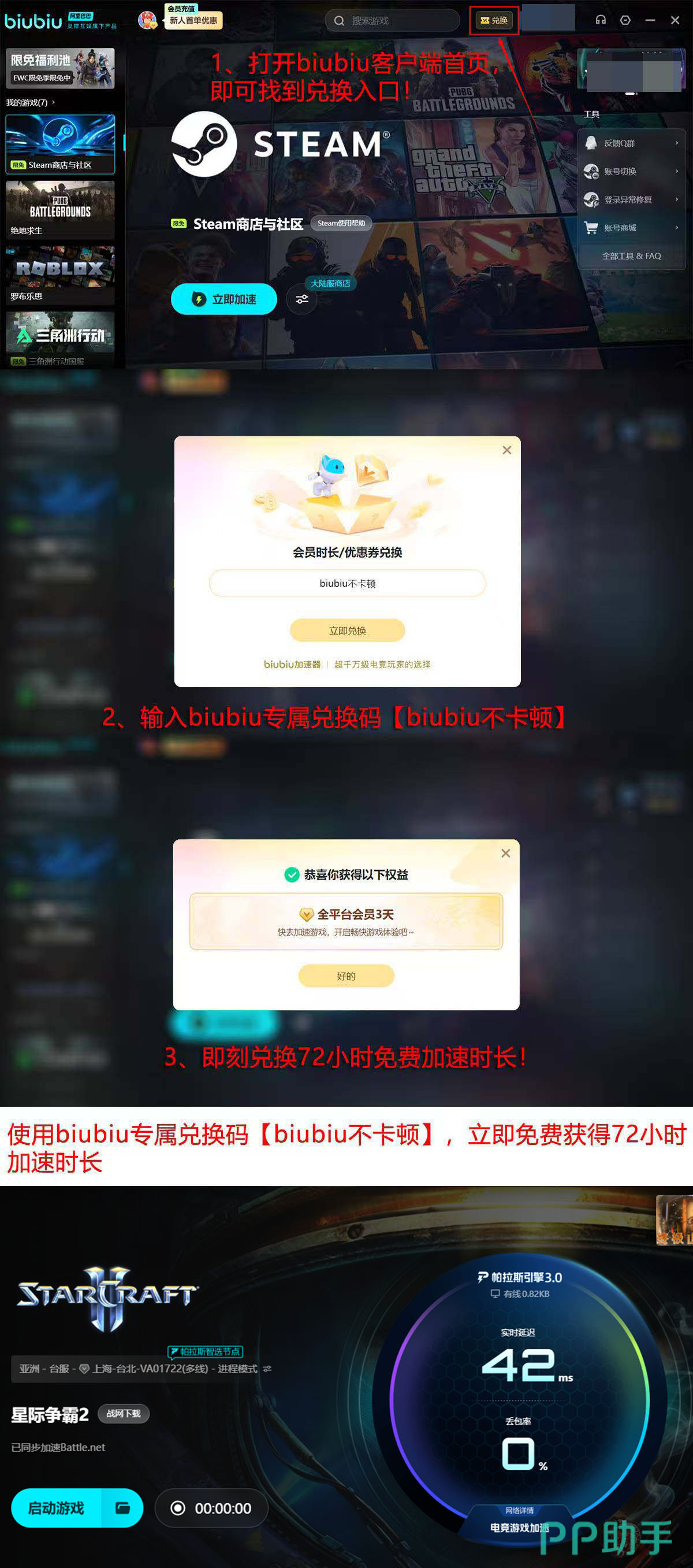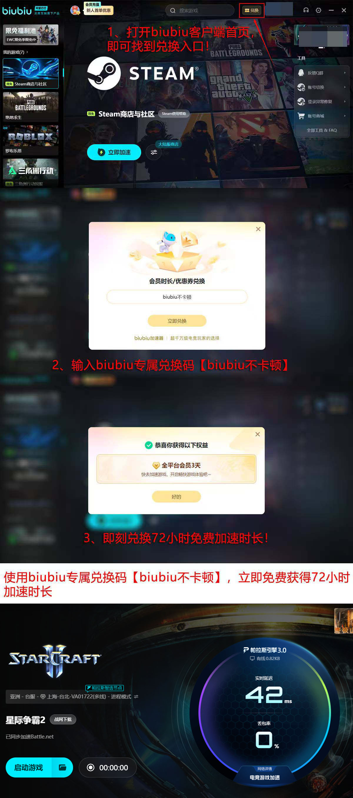 实测表明,启用biubiu加速器后,《星际争霸2》在标准1080p分辨率及中高画质设置下,平均网络延迟下降约41%,丢包率趋近于零,操作指令从输入到生效的全链路耗时缩短37%。玩家可直观感受到微操响应更及时、单位编队移动更顺滑、技能释放判定更精准。当前平台开放限时体验通道:新用户注册即赠24小时全功能使用权;完成会员身份激活后,还可通过输入【biubiu不卡顿】口令额外兑换72小时加速时长,两项权益叠加可达96小时连续使用权限。同时支持包括《星际争霸2》在内的数千款PC游戏免配置一键加速。