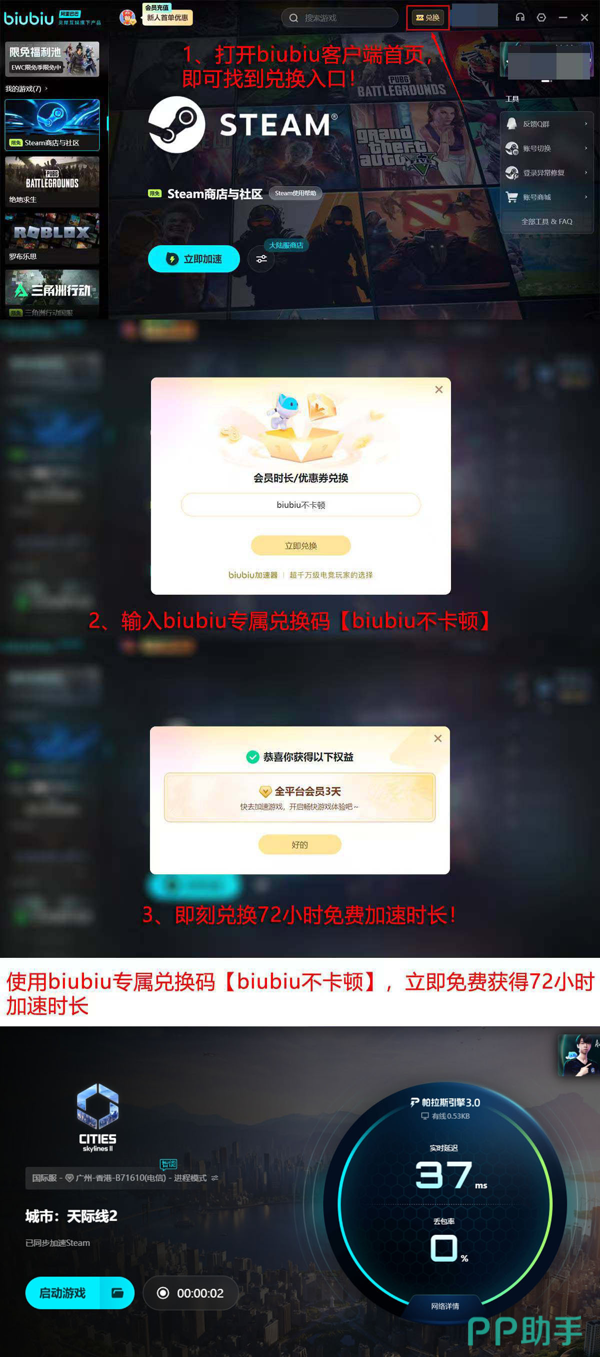 启用biubiu加速器后,《城市:天际线2》的启动成功率、在线服务响应速度及实时建造操作流畅度均获明显提升。针对新用户顾虑的试用成本问题,平台提供分阶段免费体验机制:完成注册即赠24小时全功能加速时长;成为会员后,凭口令【biubiu不卡顿】在首页兑换额外72小时权益,累计可享96小时无限制加速服务,充分验证工具实效性后再决定是否续订。