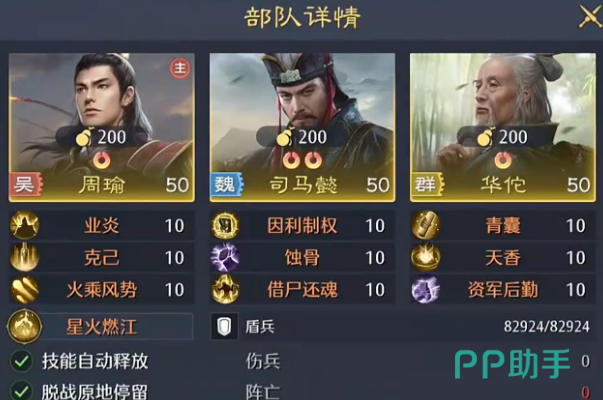 本阵容采用三核固定配置:主将司马懿、副将周瑜、辅助华佗。其中司马懿置于主将位,技能推荐“借尸还魂”与“蚀骨”组合,二者协同可高频触发中毒效果。中毒作为游戏中伤害结算独立、持续时间长的核心异常状态,不仅具备可观的基础伤害,还能有效压缩敌方血线成长空间,使战斗节奏更易掌控。若暂未获取“蚀骨”,可临时选用“鼓角齐鸣”替代,虽中毒覆盖率下降,但仍能维持策略输出连贯性。