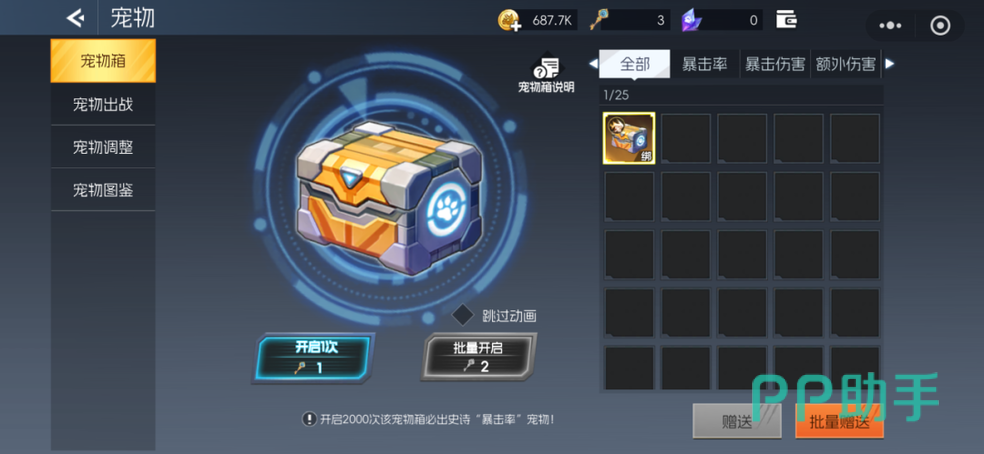 除了通过基因改造提升实力之外,大家还可以通过宠物养成为自己培养一个战力强大的宠物伙伴,比如可以通过宠物宝箱获得各类不同的宠物,一些指定词条里的宠物箱是会出规定属性的宠物的,还可以进行赠送。如果是出战宠物可以获得两倍主属性以及重点属性的加成,而助战宠物则是可以激活基础的属性。若是有的宠物不用分解的话,还可以得到精魄用于更多助战位。
