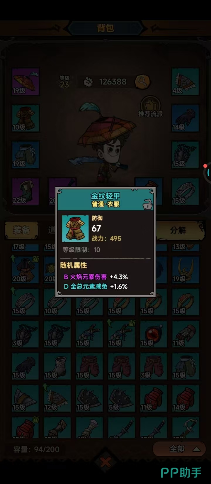 饰品选择重在精准补足输出缺口。戒指首选密文戒指,提供40点基础攻击、5点额外攻击及神圣元素伤害加成,是当前阶段最高效的输出增幅部件;背包中可携带15级红纹戒指作为备用,双戒指叠加后攻击收益显著。其余非核心饰品建议进行系统化清理:所有等级低于15级的护肩、手套,重复获取的低属性戒指,以及属性平庸的裤子,均应保留一件作备用,其余统一分解以获取强化材料;明显不匹配的装备(如10级金纹轻甲)则应及时淘汰,避免占用背包空间。