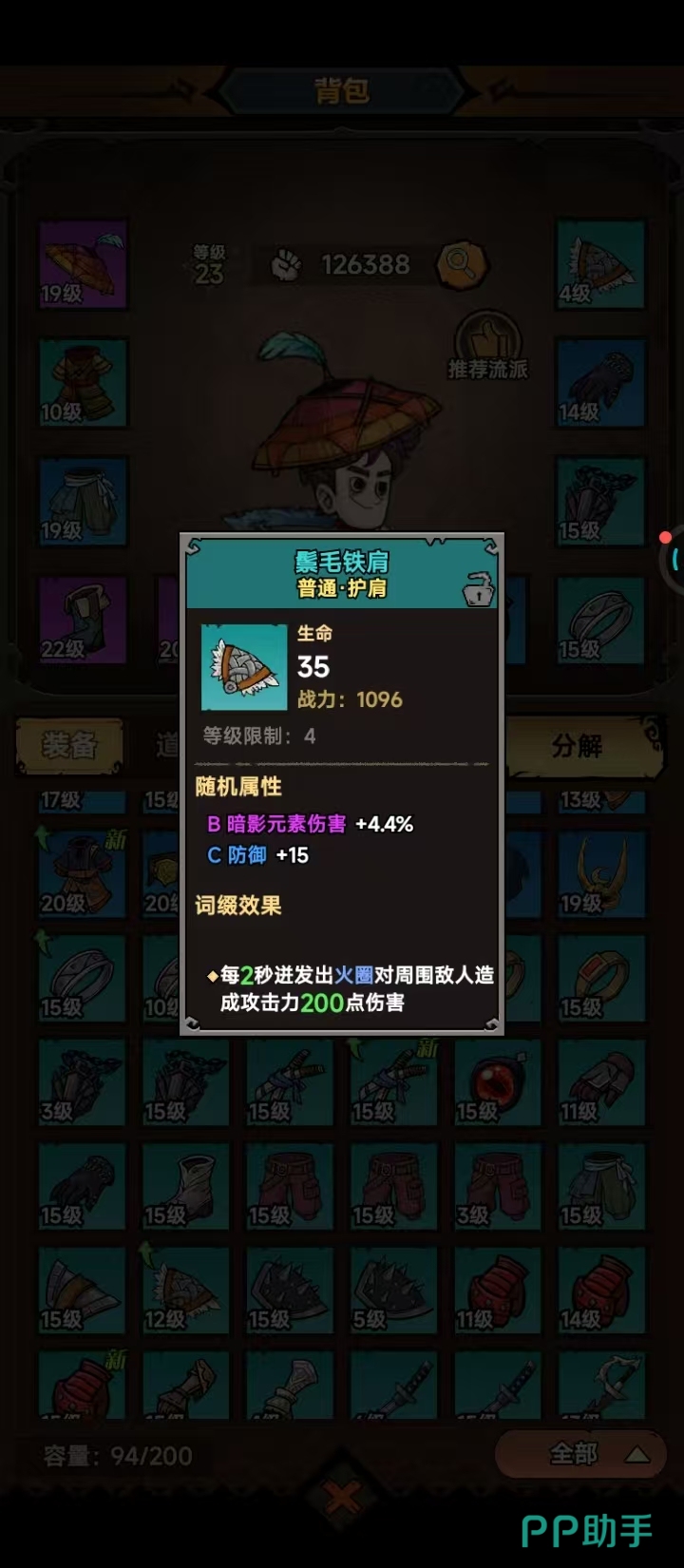 防具配置需遵循“等级匹配+功能适配”原则。头部推荐19级紫色帽子,属性达标且易获取;上衣建议在20级后及时更换为更高属性版本;护肩应避开4级鬃毛铁肩,转而选用15级护肩——其等级更高、防御值更优;腰带可长期使用19级蓝色品质,属性均衡无需频繁替换;鞋子推荐22级紫色款式,兼具高等级与防御加成,是提升容错率的重要保命组件;手套方面,14级蓝色手套可作为过渡,待角色达19级后立即升级替换。