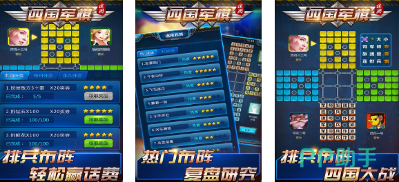 国内少有的成熟四人军棋联网对战产品,完整还原四国对战规则体系:四方独立布阵、暗棋推演、工兵挖雷、司令压阵等关键机制全部上线。内置AI复盘分析工具,支持逐回合回放、胜率热力图与走法建议;匹配系统按段位+历史胜率双维度分组,避免实力断层。操作采用“长按拖拽+点击确认”双模交互,兼顾新手容错与高手效率,单局平均时长控制在12–18分钟,节奏紧凑不拖沓。