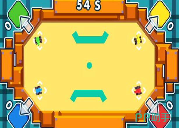 专注本地同屏对抗的像素风坦克竞技游戏,支持四人单指操控(无需手柄),红、蓝、黄、绿四色载具对应不同玩家。地图为纯随机生成,每局刷新地形障碍与补给点,杜绝背板可能。物理引擎模拟真实碰撞反馈与炮弹轨迹,配合粒子爆炸特效与屏幕震动反馈,增强打击感。俯视角固定镜头+自动缩放机制保障视野清晰,单局时长稳定在3–5分钟,节奏明快,适合快速组局与多轮连战。