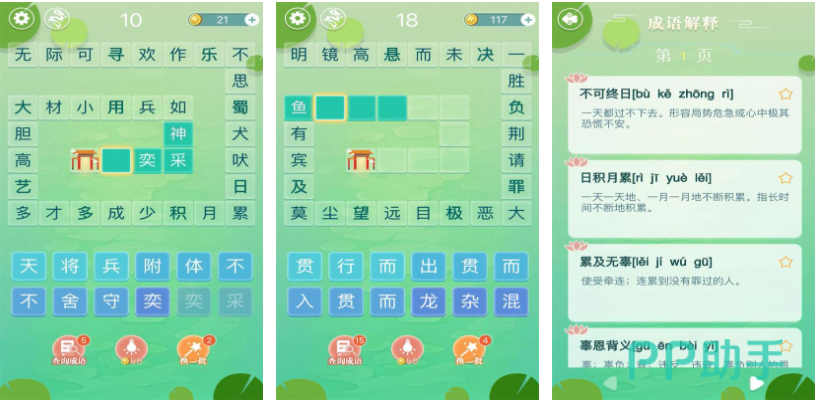 聚焦成语结构解析,强调“字—词—义”三层理解逻辑。每个关卡提供不完整成语及若干候选汉字,玩家需结合语法习惯、典故出处及字形特征进行匹配。同步嵌入权威成语注解模块,涵盖出处、用法、近反义词等维度。怀旧风格背景音乐强化文化代入感,适合希望在休闲中夯实语文基础的用户。