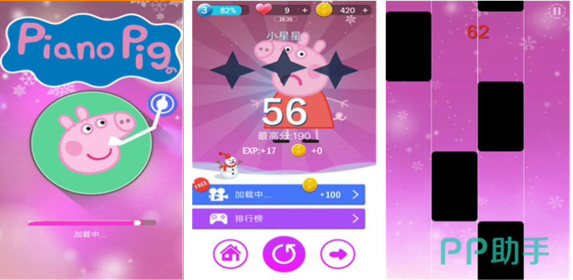 音乐节奏类益智游戏,采用经典下落式钢琴块机制。曲库收录《Peppa Pig Theme Tune》《Jumping in Puddles》等12首官方授权音频,每个音符触发对应角色动画反馈(如佩奇拍手、乔治跳跃)。关卡按BPM分层设计,初级模式仅需单指点击,进阶模式引入双轨并行与滑动长按,逐步提升听觉分辨力与手指灵活性。界面保留原版动画标志性红裙、蓝裤、圆脸造型,确保视觉一致性。