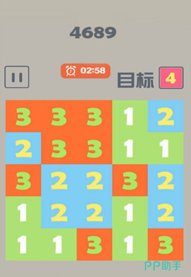 以数字合成为核心驱动力:相同数值方块两两相碰升阶(如2+2=4,4+4=8),达成目标数字即完成当前阶段任务。全局设有倒计时机制,时间归零前尽可能提升合成等级与消除总量。目标值随每次达成自动+1,形成渐进式挑战曲线。所有运算本地完成,无服务器校验,离线状态下数据完整保留。