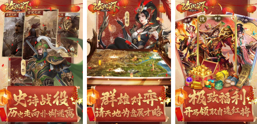 以三国乱世为背景,《国战来了》融合城建经营、武将养成与即时国战三大支柱玩法。玩家可选择刘备、曹操、孙权等阵营代表人物开局,逐级扩建郡县、修建箭塔与粮仓,提升人口承载与军备产能;随等级开放招募系统,集齐名将组建专属军团,搭配兵种克制与阵型布防,在大型地图上发动攻城战、野战与伏击战。地理系统严格参照汉末地形建模,战场环境直接影响行军速度与战术选择,增强策略纵深感。