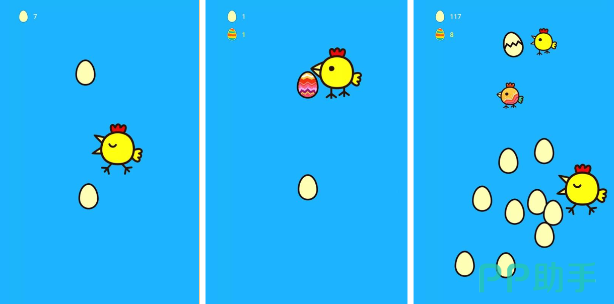 轻量级放置养成类游戏,核心玩法围绕鸡蛋孵化展开。玩家收集不同外观的蛋(含普通白蛋、斑点蛋、荧光彩蛋等),投入孵化器后等待随机孵化结果。每只小鸡拥有独立外观特征与动作表现,其中彩色蛋孵化出的小鸡毛色饱和度更高、动画更细腻。背景采用低饱和度萌系插画风,音效清脆柔和,整体节奏舒缓,适合碎片时间放松使用。