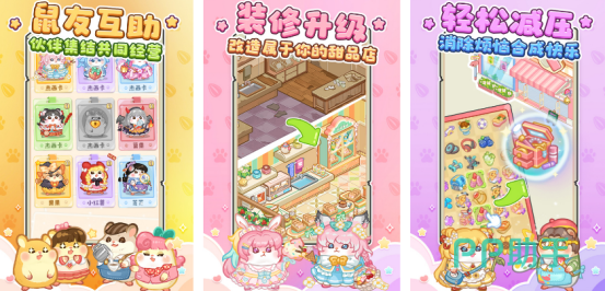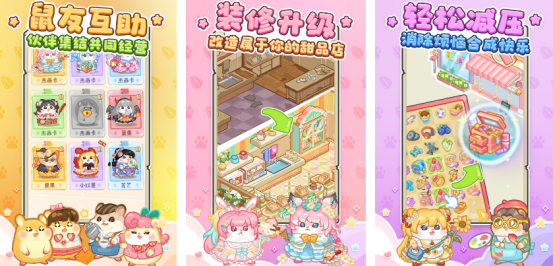 本作融合模拟经营与消除合成双核心玩法,玩家将接手甜品店或小型超市等实体门店,通过合理排班、商品调配与空间改造实现稳步扩张。特色萌系角色如杰西卡、果果等拟人化小老鼠作为员工全程协助,提供经营建议并参与互动任务。随着进度推进,店铺可逐步完成装修升级,打造个性化视觉风格与专属产品线。