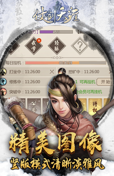 本作主打高自由度与低操作门槛,支持全程挂机养成,玩家可自由择选宗门,从入门弟子起步,逐步解锁上百种武学秘籍。功法搭配无固定套路,招式组合、内功心法、轻功身法均可依个人偏好灵活配置。战斗采用纯文字动态描述,通过精准措辞还原攻防节奏与临场张力,配合自由对战系统,实现“一念出招,千变万化”的文字格斗体验。