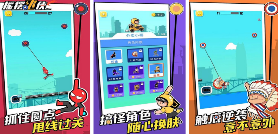 以物理绳索系统为核心玩法,玩家需预判抓取点位置、控制摆幅角度与释放时机,在密集楼宇群与动态机关间完成高精度位移。地形包含旋转平台、移动障碍、风向干扰等变量,考验反应速度与空间预判能力。角色库超30款,含多套可更换外观皮肤,支持个性化形象定制。