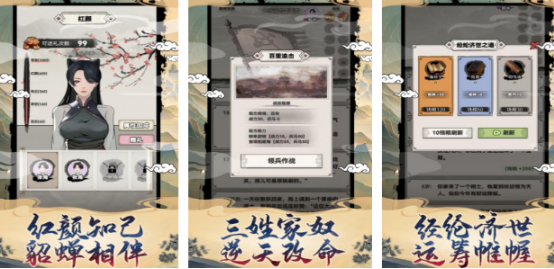 聚焦古代权谋与情感成长双线叙事,采用日程制养成系统。玩家每日可分配时段用于习武、修文、经商或赴约,各项行为同步影响四维属性(智、体、德、貌)及资产总额。女主好感度通过特定事件链触发,如科举殿试、赈灾筹粮、宫宴献策等剧情分支,决定最终归属路线。资产系统随朝代周期动态刷新,支持田产购置、商队调度、典当行运营等真实经济行为,强化代入感与策略纵深。