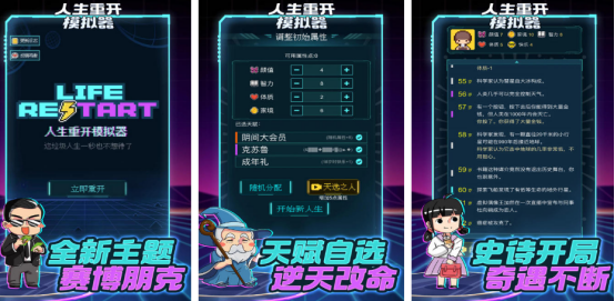 主打高随机性人生模拟机制,初始阶段提供三轮天赋抽取机会,涵盖“过目不忘”“百毒不侵”“贵人运”等百余种效果。属性面板包含智力、体质、魅力、运势四大维度,总点数固定但分配方式完全自主。不同天赋与属性组合将激活隐藏事件链,例如“高智力+低体质”触发隐士线,“高魅力+高运势”解锁皇室联姻支线。每局游戏生成唯一人生轨迹报告,支持导出对比分析,激发重复游玩欲望。