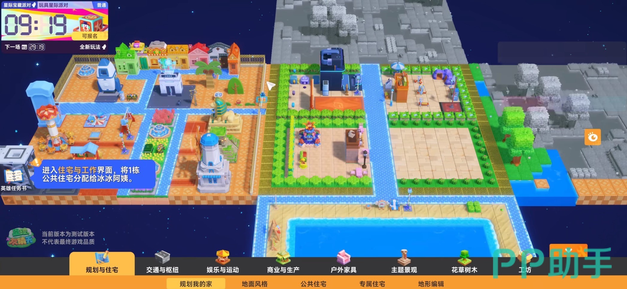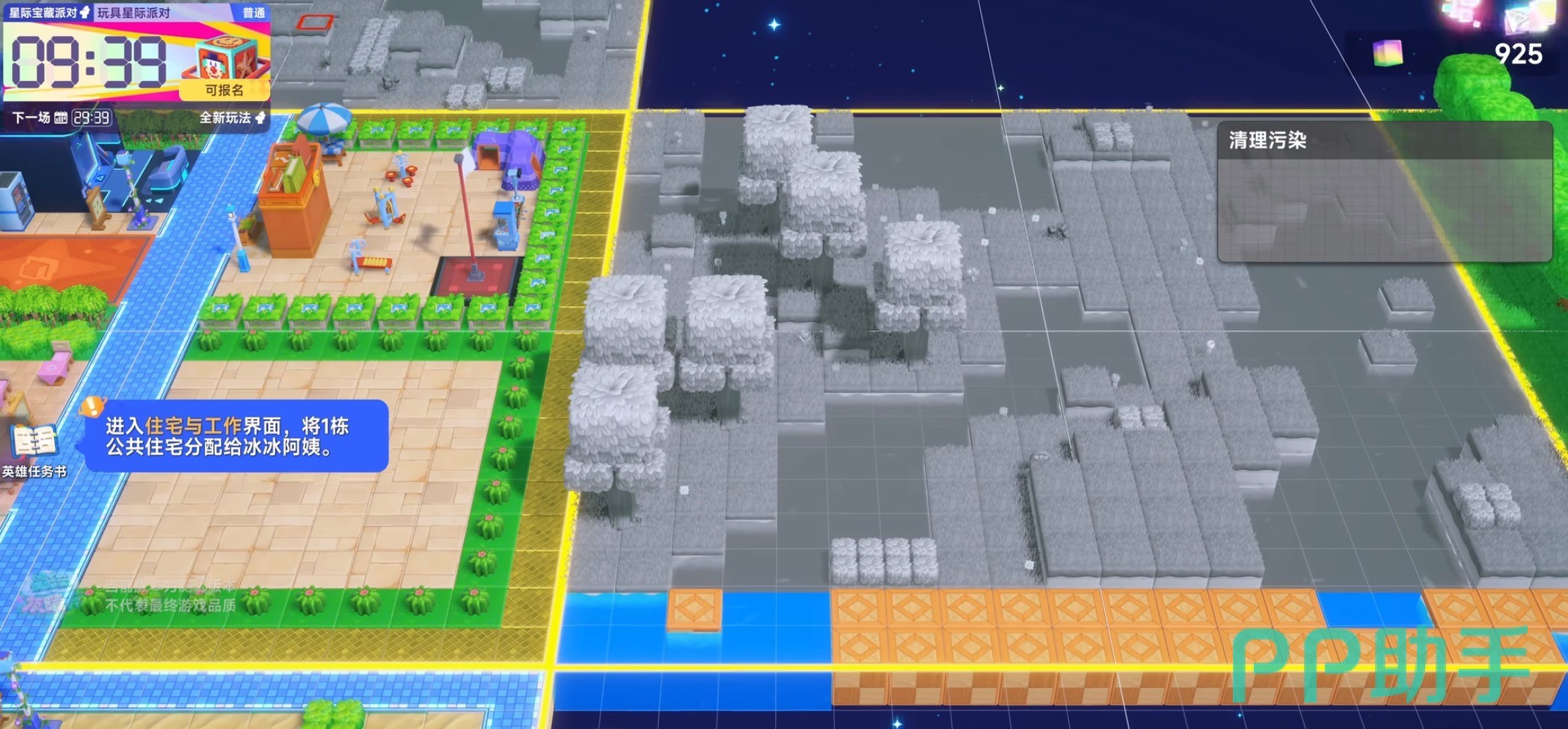 在进入游戏后玩家有机会选择自己想要定居的星球,在星球的形状上都是6面体,点击游戏主界面可以选择将星球全部平铺开,可以以平行视角查看星球的每一面。不过在星球扩建上,会有一些灰色区域,这些就是被污染的区域,想要让这些被污染的区域恢复正常,能进行建筑的搭建需要玩家消耗一定量的【奇迹立方】来恢复,也正是基于这样的设定,在后续玩家们能清理掉大部分污染区域后,还会有机会在立面体上再次拼接上其他立体图形,让星球的面积得以扩张。