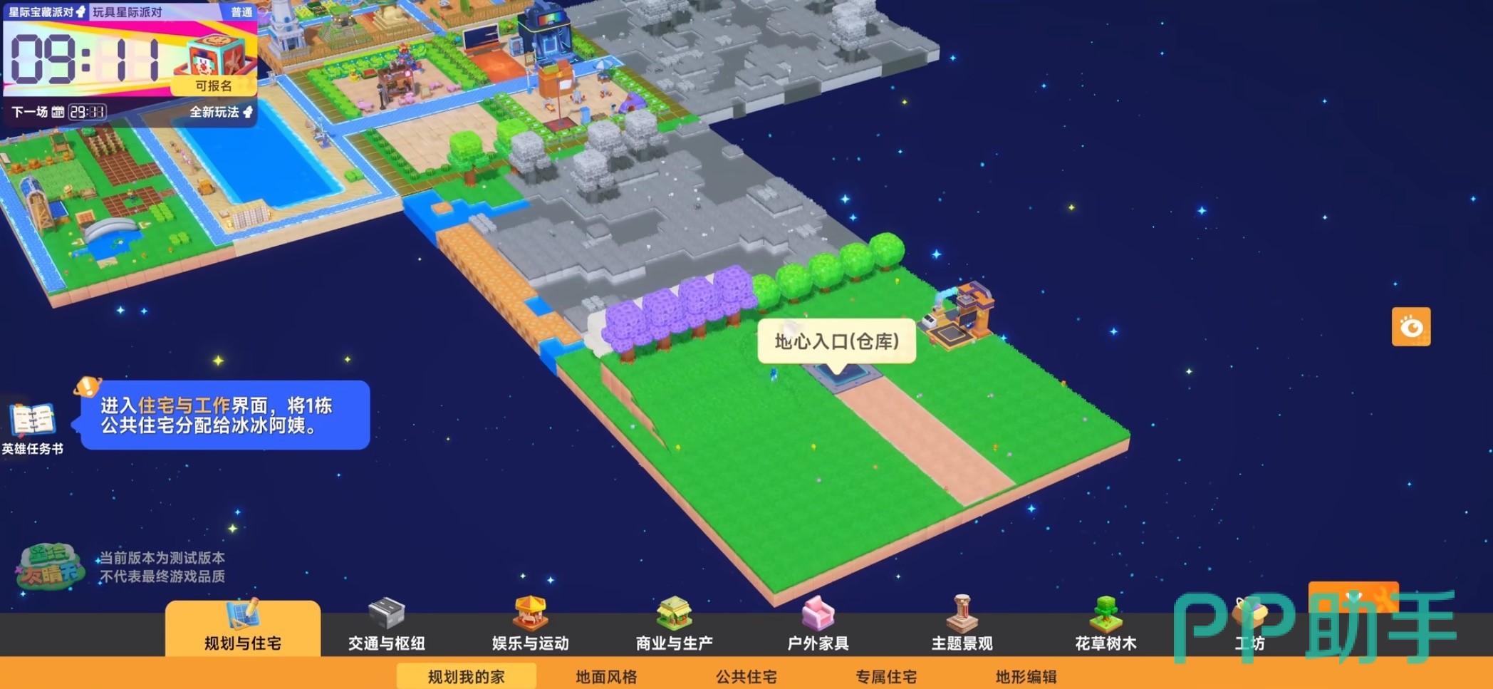 星球是一个六面体,玩家可以选择展开平铺,也可以选择直接以立面体的形态查看整个星球上的建筑,在查看时可以选择利用飞行器或者是筋斗云。玩家选择登陆星球的话会随机登陆,不过只能是玩家已经清理污染的区域。