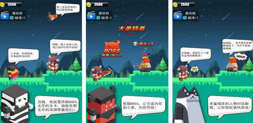 横版像素风PvP对战射击游戏,主打快节奏弓箭互射玩法。玩家与AI或真人对手在固定平台展开攻防,通过调整射击角度、力度及技能释放时机消耗对方生命值。角色动作诙谐生动,场景元素抽象却不失辨识度,弹道物理基于经典抛物线模型,配合连招机制与道具干扰,形成策略性与爽快感并存的对抗体验。