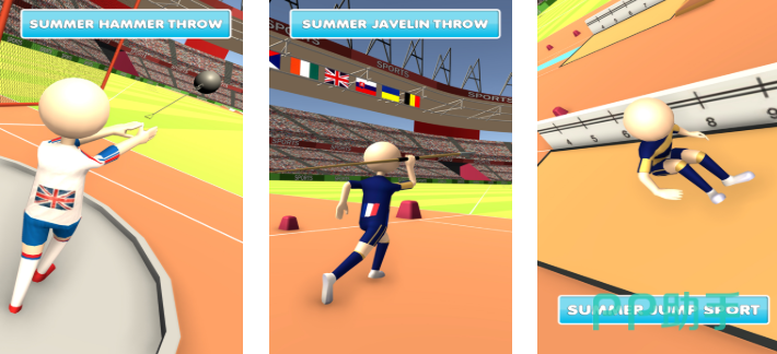 本作以高度拟真的物理反馈与细致入微的场景还原著称,涵盖百米飞奔、三级跳远、撑杆跳高、铅球、标枪等十余项经典田径项目。起跑器震动反馈、沙坑落地缓冲、投掷器械旋转轨迹均经精准建模。多人联机模式下,双人交替点击屏幕完成百米竞速,节奏把控决定胜负,临门冲刺瞬间极具代入感与心跳压迫感。