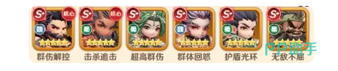 这套阵容属于比较全面的雷系,刘备的护盾与自带增益可以让队伍的攻守能力提升,张飞、曹操带有的护盾机制,可以去保护关键c位队友,典韦、关银屏这两位都带有超强的群体伤害,能帮助压低敌方血线,在搭配上关羽独特的收割,适合适合前期推图。