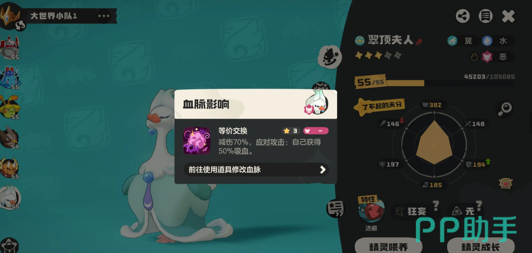 这两类资源在游戏里都是比较关键的材料,一般去参与一些限时活动,或者指定任务,都是可以积累的。精灵等级满足后,直接进入到宠物背包界面,在进行操作之前,先查看下该宠物的详情信息,搞清楚每一种可以选择的血脉天赋效果,确认后,点击对应血脉觉醒图标即可。