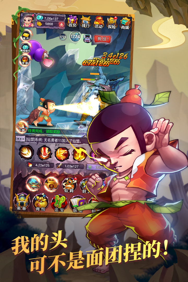 突破传统养成框架,首创葫芦娃合体进化系统。玩家通过收集碎片激活合体协议,触发大娃+二娃→“神目力士”、三娃+四娃→“熔岩金刚”等跨角色融合形态,每种合体形态具备独立技能动画与属性加成。战斗采用半即时制操作,玩家需预判妖魔攻击节奏释放合体技,配合能量槽管理与闪避判定机制,构建高反馈战斗循环。