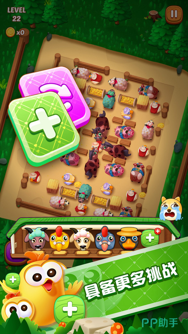 采用低多边形+柔光渲染的清新卡通风,动物形象圆润饱满,动作带弹性物理反馈。核心玩法融合空间解谜与策略调度:通过滑动栅栏、旋转食槽、堆叠木箱等方式重构牧场动线,将目标动物引导至出口。部分关卡嵌入“合并同类项”机制(如三只小鸡合成一只母鸡触发新路径),在益智框架内注入意外性笑料。