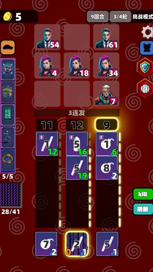 一款主打数字运算与路线压制的原创卡牌游戏。战斗采用三线并行机制,玩家需通过手牌数字组合达成指定目标值,从而激活对应路线攻击。道具系统提供动态调整能力——可修改已出牌数值、强化单次伤害或施加不可阻挡效果。叠加Roguelike成长结构,使每局进程具备高度不确定性与策略延展性。