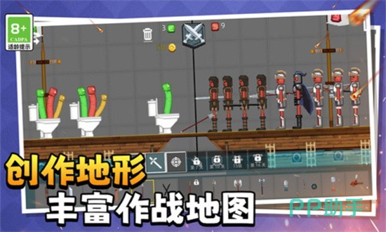 本作在传统沙盒框架中融入强节奏感的闯关机制,构建出紧张刺激的冒险循环。游戏中设有大量风格迥异的原创角色,每种颜色皮肤对应独立属性体系,支持差异化成长路径。地图编辑功能全面开放,玩家可自主设定敌人配置、地形结构及关卡逻辑,内置可选作战地图数量丰富,满足多样化挑战需求。