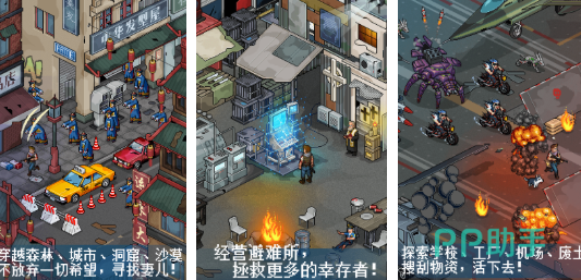采用精细像素美术风格还原后启示录世界。主角为退役特种兵,在丧尸横行的开放地图中独自求生:近战格斗需预判攻击节奏,物资搜刮影响装备锻造进度,避难所建设牵涉人口安置与防御工事升级,营救幸存者则触发多线任务分支。场景中隐藏可交互细节,如破损门窗可加固、废弃车辆可拆解,形成“探索—采集—建造—防御”闭环机制。单局时长可控,适配通勤、午休等轻量使用场景。