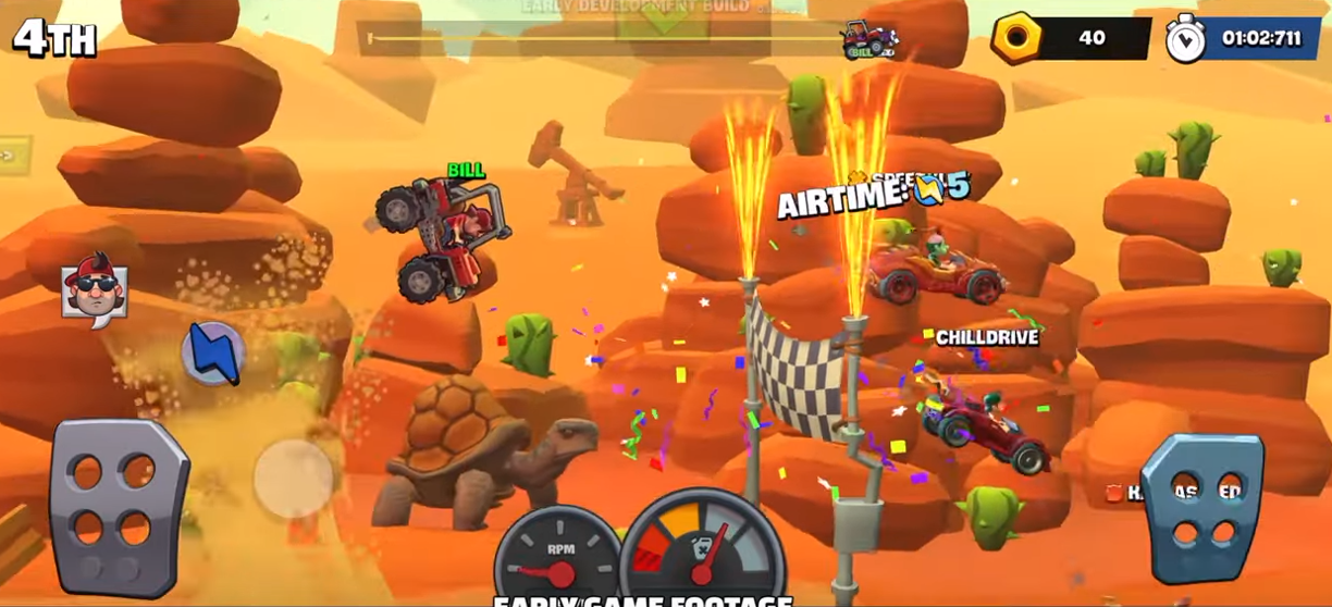 作为经典物理驱动赛车系列的全新续作,本作延续了标志性的双按键操作逻辑——仅通过油门与刹车控制车辆重心与姿态。游戏中提供越野车、摩托车等逾30种载具,每款均具备独立的重量分布、悬挂响应与抓地特性。玩家可深度定制发动机输出、轮胎材质、减震硬度等关键部件。其物理系统以高弹性与强反馈著称,翻滚、腾空、侧滑等动作表现夸张却不失逻辑,同时融入加速冲刺、能量护盾等辅助道具,强化闯关节奏感。