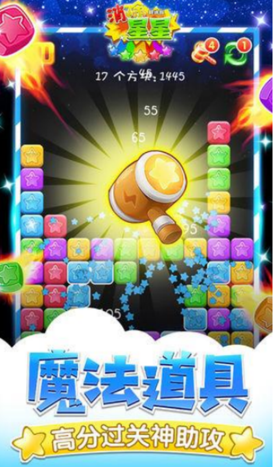本作是消除类玩法的创新升级版本,在保留传统“点击同色相邻星星消除”核心机制基础上,取消时间压力,每关设定明确分数目标,鼓励玩家通过空间规划与连消策略提升通关效率——剩余星星越少,额外得分加成越高。游戏内嵌双模式架构:主模式延续高辨识度的星图消除逻辑;特色“星空联盟”则融合俄罗斯方块式填充消除机制,当某行或某列被完整填满时触发即时清除,大幅增强操作反馈与节奏变化,兼顾儿童与中老年用户群体的操作习惯与认知偏好。