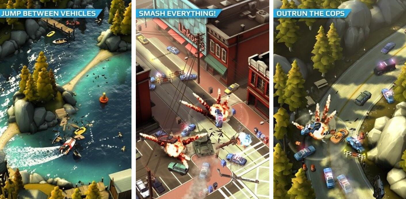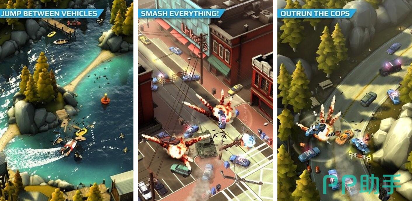 以警匪追逐为核心叙事框架,融合动作破坏与高速驾驶玩法。玩家扮演高机动性盗车者,在城市街道、高速公路及工业区等多变场景中规避警力围堵,利用撞击、翻滚、爆炸等物理反馈突破封锁。车辆具备模块化损毁系统——碰撞可能导致车门脱落、引擎冒烟甚至起火爆炸,而强化底盘、加装防撞梁等改装项目可显著提升生存能力。