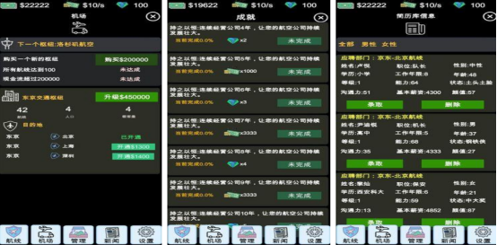 采用策略导向的文字交互界面,聚焦机场全生命周期建设。前期需完成地形测绘、净空评估、航站楼功能分区设计及跑道方位校准;中期推进航线网络布局,包括国内干线、国际远程及货运专线的梯度开通;后期引入商业生态运营,如免税零售、餐饮特许经营、广告媒体资源开发等非航收入模块。员工体系支持分级培训机制,确保塔台、机务、安检等关键岗位持证上岗率达标。