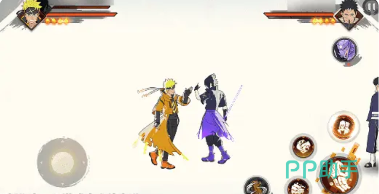 作为双人作战忍者,玩家们可在忍者界面或是备战界面选择登场默认角色,战斗中轻按奥义就能切换到另一角色,切换后忍者对应普攻,技能均会发生改变。鸣人和佐助共用技能CD,但是双方血条是独立的,其中之一血条耗尽,后续整场就不可切换另一角色。