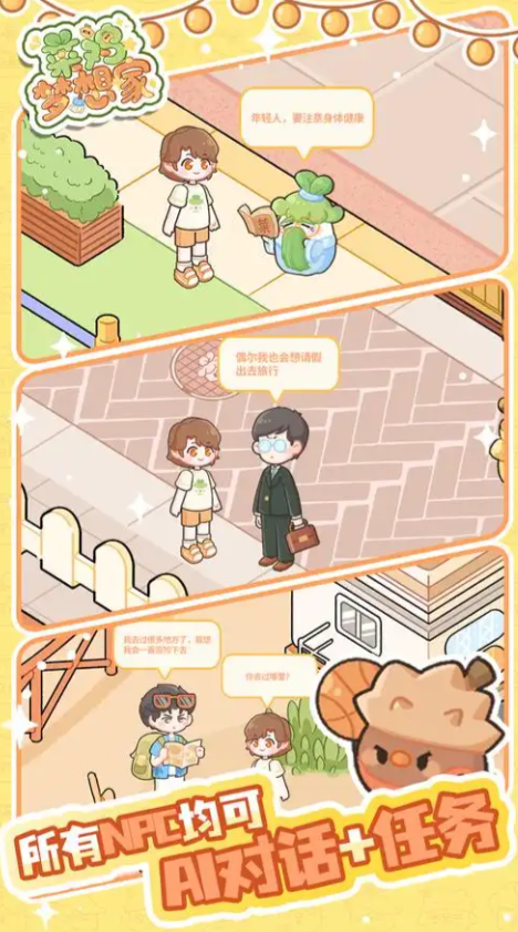 除驿站经营外,玩家可自由漫步于小镇街道,与数十位拥有独立背景设定与行为逻辑的NPC互动。每次有效对话不仅推动人物关系发展,还可能触发隐藏委托任务。成功完成指定目标后,系统将发放金币奖励或限定款家居装饰道具,用于个性化布置自有住宅。建造系统支持自由摆放、组合与升级家具,让每位玩家的小屋都呈现独特风格。
