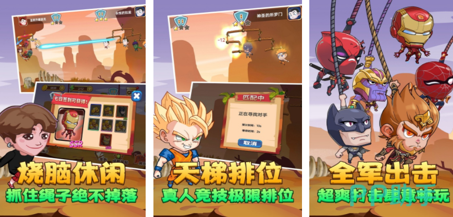本作构建了一个全卡通化英雄宇宙,中外知名角色均以Q版形象登场。玩家需组建多角色小队,依据力量、速度、技能冷却等差异化属性进行战术编排。战斗采用即时指令+自动释放模式,配合蛛丝牵引、空中连击、范围控场等特色机制展开。关卡设计融合策略塔防与解谜元素,部分挑战需合理调度英雄在悬空绳索阵列中协同推进,形成兼具观赏性与策略深度的对抗体验。