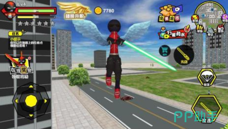 该作以极简火柴人画风呈现高自由度开放城市。主角可发射蛛丝实现垂直攀爬、横向摆荡及高速滑翔,移动过程中支持实时转向与急停。除徒手格斗外,还集成近战武器、投掷物及环境破坏技能。任务系统包含定点清剿、限时护送、载具追击等多元目标,部分场景支持驾驶警车、摩托甚至直升机快速响应事件,强化临场节奏感与战术选择空间。