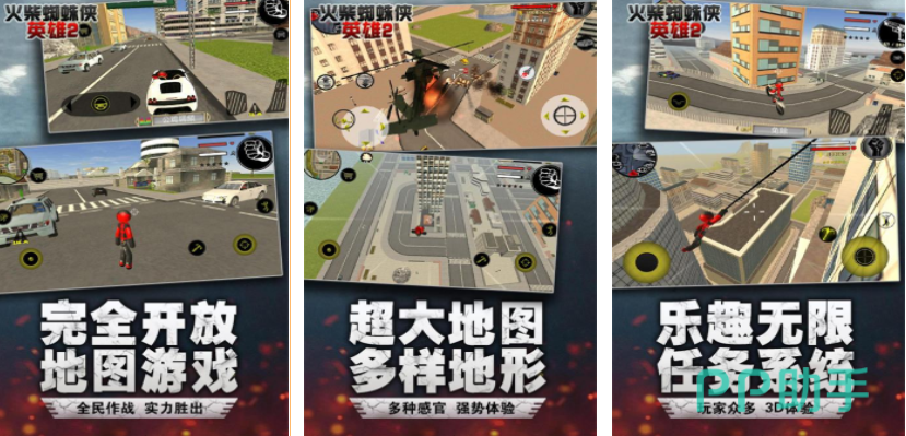 作为系列续作,延续标志性火柴人美术体系,并升级为全3D建模场景。城市地图规模扩大,新增地下管网、天际桥梁、悬浮平台等多维通行区域。蛛丝系统优化响应延迟,支持多点锚定与动态回收。交通工具模块拓展至陆(越野车)、海(快艇)、空(喷气背包)三类,各载具具备独立操控逻辑与碰撞反馈。主线任务与随机事件并存,鼓励玩家利用地形与载具组合制定个性化行动路线。