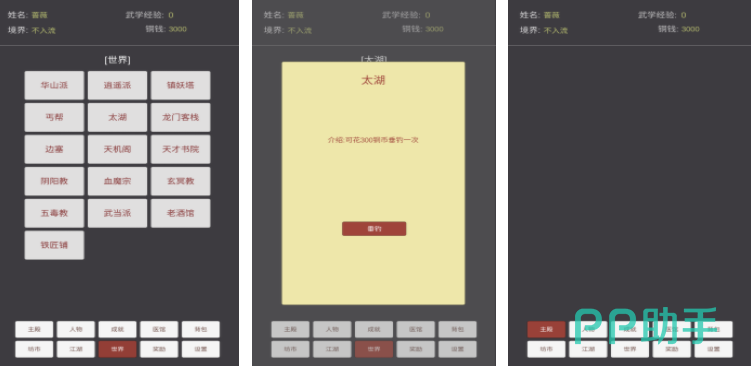 区别于传统武侠RPG的视觉化表现,本作以全文字驱动构建动态江湖生态。从初入市井到执掌宗门,角色成长路径完全由文本事件链决定:结交侠客、研习武学、参与帮派纷争、破解悬案谜题……每个选择都将影响声望、武力值及阵营关系,最终导向数十种差异化人生结局。门派体系完整,功法设定严谨,还原古典武侠的精神内核。
