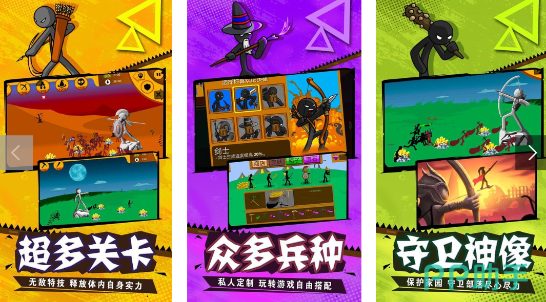 以极简火柴人形象承载深度策略内核,战场规模宏大,单位行为逻辑真实。玩家需统筹兵种搭配、阵型部署与技能释放时机,指挥部队完成攻防转换。技能特效饱满,打击反馈强烈,配合实时战况演算,营造紧张刺激的战术博弈氛围。