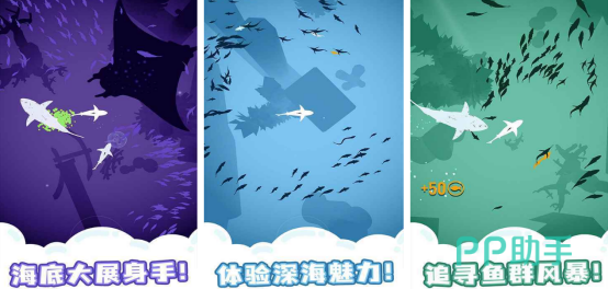 本作采用线性成长机制,玩家操控鲨鱼通过吞食小型海洋生物积累质量,逐步解锁更高级形态。随着体型增大,可攻击的目标范围同步扩展,但也将面临军舰、潜水员、巨型章鱼等高威胁单位。每阶段进化均需达成特定进食量与生存时长目标,最终目标是成长为统治整片海域的顶级掠食者。